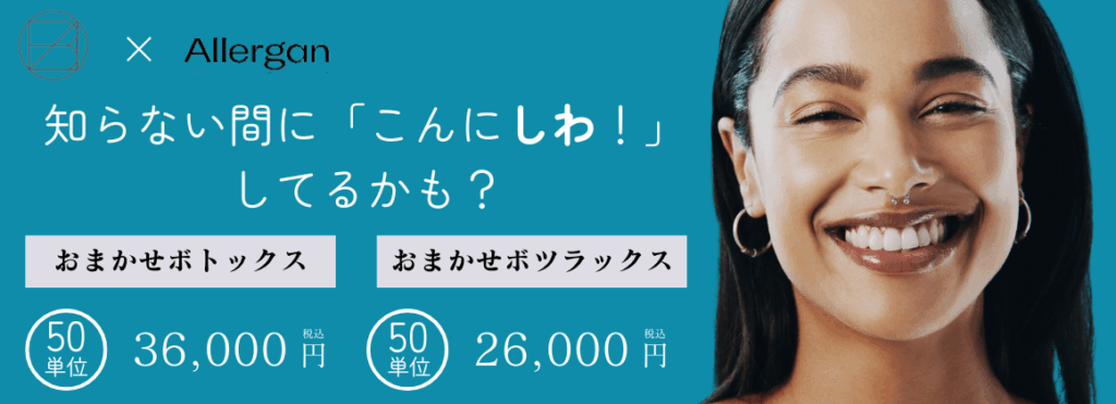 当院では、目尻は片方で12単位、眉間は雛眉筋に(4単位x2)と眉間に4単位、顎は12単位、エラは40~50単位を基本としています。