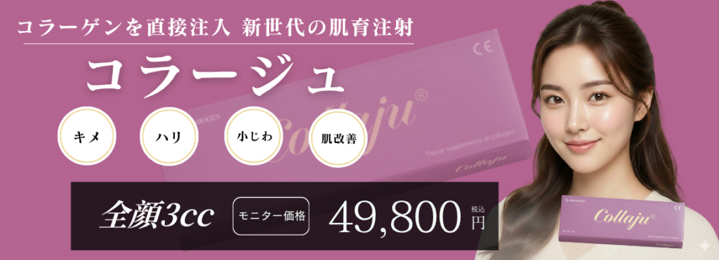 コラージュは高純度99.9%のⅠ型アテロコラーゲンをお肌に直接補充することで加齢などにより減少するコラーゲンを補っていく新しい肌育注射です。