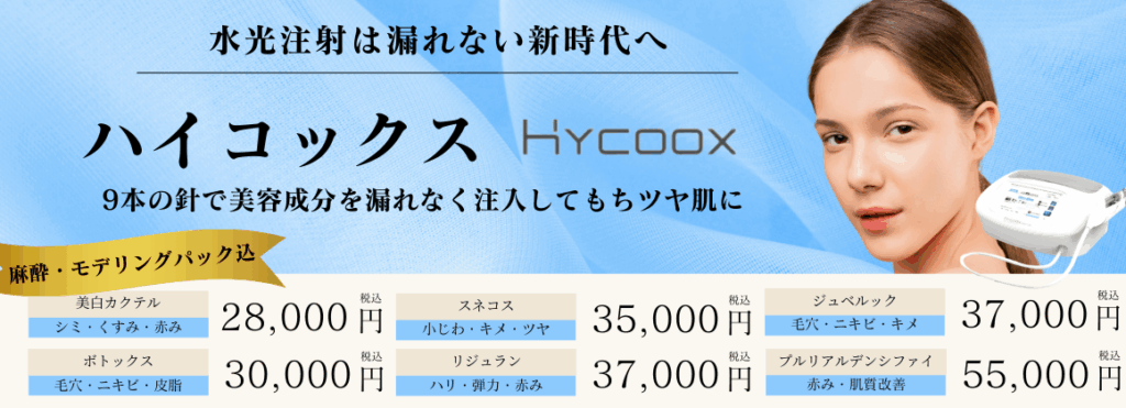 水光注射はヒアルロン酸など美肌のための有効成分を表皮~真皮層内へ細かく注入するメソセラピー用の注入機器で10年以上前から韓国を始めとした世界中で支持されている施術です。