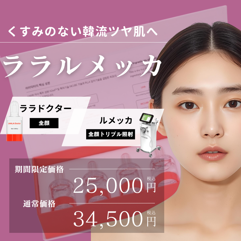 心斎橋院、梅田院、神戸院で共通のララドクターの全顔の施術に加え、各院ごとに以下のようなセットをご用意しております。