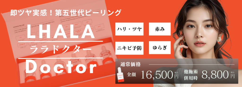 ララドクターは、剥かないピーリングとして韓国で人気のララピールを改良し、成分を医療機関専用に特化させた第5世代低刺激ピーリングです。